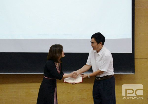 杨兆禧为谢云霞颁发聘书(张小笛 摄)