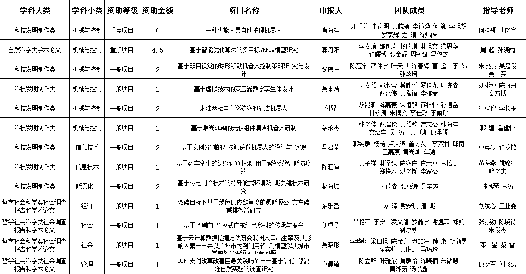 据介绍,校团委十分重视“攀登计划”工作,已形成“全年宣传动员-全线发掘培育-全程跟踪指导”的“三全项目培育体系”。全年开展“攀登大讲堂”活动,邀请各领域专家学者讲授前沿学术知识;校团委老师在讲座中宣讲“攀登计划”;通过学院、实验室、学科竞赛等多线条发掘潜在项目,开展指导老师项目研讨会、申报团队指导讲座等活动进行申报前的项目培育。项目立项后,通过定期抽查、中期检查、推荐参赛、结项答辩等方式,指导督促各项目团队完成实物、论文、专利并参加科创类竞赛。在2022年“攀登计划”申报阶段,校团委相继举办了“攀登计划”宣讲会、攀登大讲堂之项目培育专题研讨会、 “攀登计划”项目答辩评审、申报书撰写培训会等宣传培育活动,在10个单位77个申报项目中评选推送14个项目申报2022年广东省科技创新战略专项资金(大学生科技创新培育),最终获得13个项目立项、28.5万资助金额的好成绩。