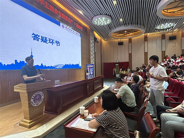 张彩霞对黄焯超的分享表示了欢迎与感谢。她指出,黄焯超历经十几年的沉浮,光鲜亮丽的称号后面承载的是一个强者披荆斩棘、永不气馁的奋斗精神,也让我们看到他深厚的家国情怀。“榜样的力量是无穷的,希望同学们从榜样的身上汲取力量,打开视野格局,提高人生站位,期待在座的学生有一天也可以回到母校,站在这里分享自己奋斗的故事。”