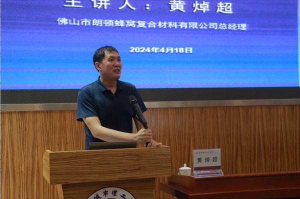 张星明对黄焯超的到来表示热烈欢迎,并隆重向在场师生介绍了黄焯超的在铝蜂窝产业创业经历。他表示,大学生创业专题讲座有利于培养更多具有创新创业意识的应用型人才,切实提升学生创业项目的质量和水平,营造大学生创新创业氛围,希望通过讲座可以帮助对创业感兴趣的同学,了解有效的创业方式和方法,提高学生的创业水平和创业能力。随后,张星明代表学校聘请黄焯超为创新创业导师,并为其颁发聘书。