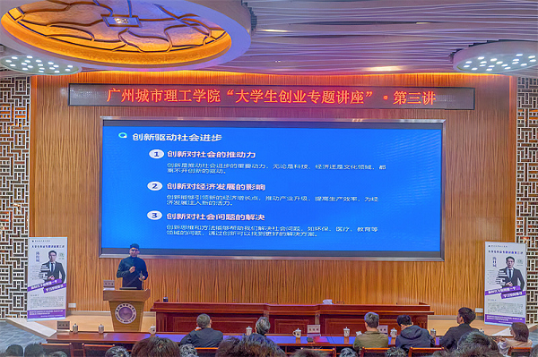 随后,陈柱城分享了他的创业历程。在创业的路上,他遇到了很多困难,遭遇了资金短缺、市场定位不准确等问题,但这些都成为了他成长的阶梯。他表示,作为创业者,持续学习是至关重要的,只有不断学习新知识、关注行业动态,并及时调整自己的思维和策略,才能适应快速变化的市场环境,提升自身的竞争力。陈柱城还讲述了持续学习的方法与途径,鼓励同学们在大学期间积极参与学校组织的各种活动项目,多积累实践经验,多拓展认知视野,勇于打破舒适圈,打破信息差,从而在职业发展中脱颖而出。他指出,大学生创业不仅是个人实现自我价值的过程,更是为社会创造价值的重要途径。创新的商业模式可以将商业与公益相结合,通过引入新的产品或服务来满足市场需求,并同时解决社会问题,实现商业与公益的双赢。