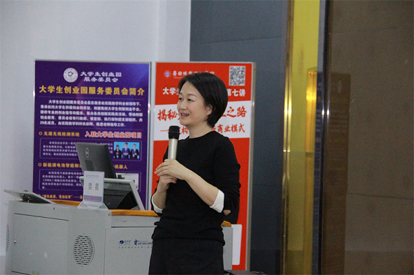 本网讯(记者 彭晔 陈思 侯家佳)为了进一步激发大学生的创业热情,切实提升学生创业项目的质量和水平,为广大学子搭建一个学习和交流创新创业经验的优质平台。11月25日晚,教务处与珠宝学院联合举办大学生创业专题讲座第七讲“揭秘大学生创业之路——探究构建卓越新商业模式”。华南理工大学工商管理学院教授、博士生导师、技术经济及管理系主任、中国国际大学生创新大赛导师、金域医学、佛朗斯股份等上市公司独立董事樊霞,教务处处长张星明,珠宝学院院长张珂、党总支副书记姚勇、副院长邢莹莹,教务处、珠宝学院相关工作人员、学生创业项目团队代表等现场271名学生参与了此次讲座。