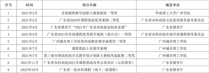 《创新创业教育》课程团队近几年荣获的教学奖励如下: