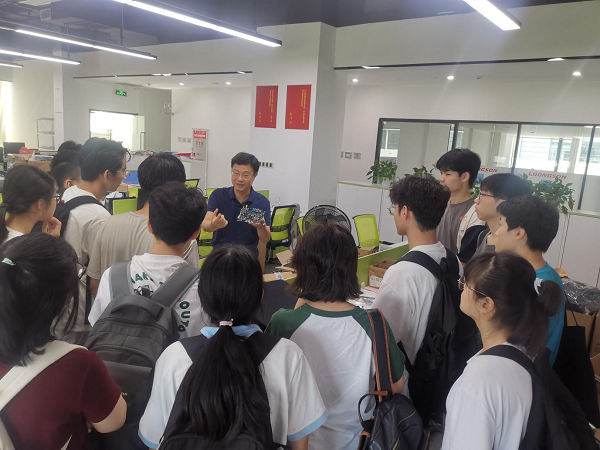 座谈会后,在江山的带领下,师生们参观了广州龙芯中科的办公场所。尽管公司正处于整理物品、筹备搬迁新址的特殊阶段,但工作人员仍以饱满的热情接待来访师生。在各自工位上,工程师们耐心向学生展示日常工作内容,分享最新研究成果。参观过程中,学生们结合自身兴趣与困惑积极提问,部分学生聚焦电路板设计细节展开咨询,部分学生围绕考研方向与职业发展寻求建议,还有软件工程专业背景的学生表达对硬件设计基础薄弱的担忧,工程师们逐一进行细致解答,为同学们扫清认知障碍、明晰学习路径。